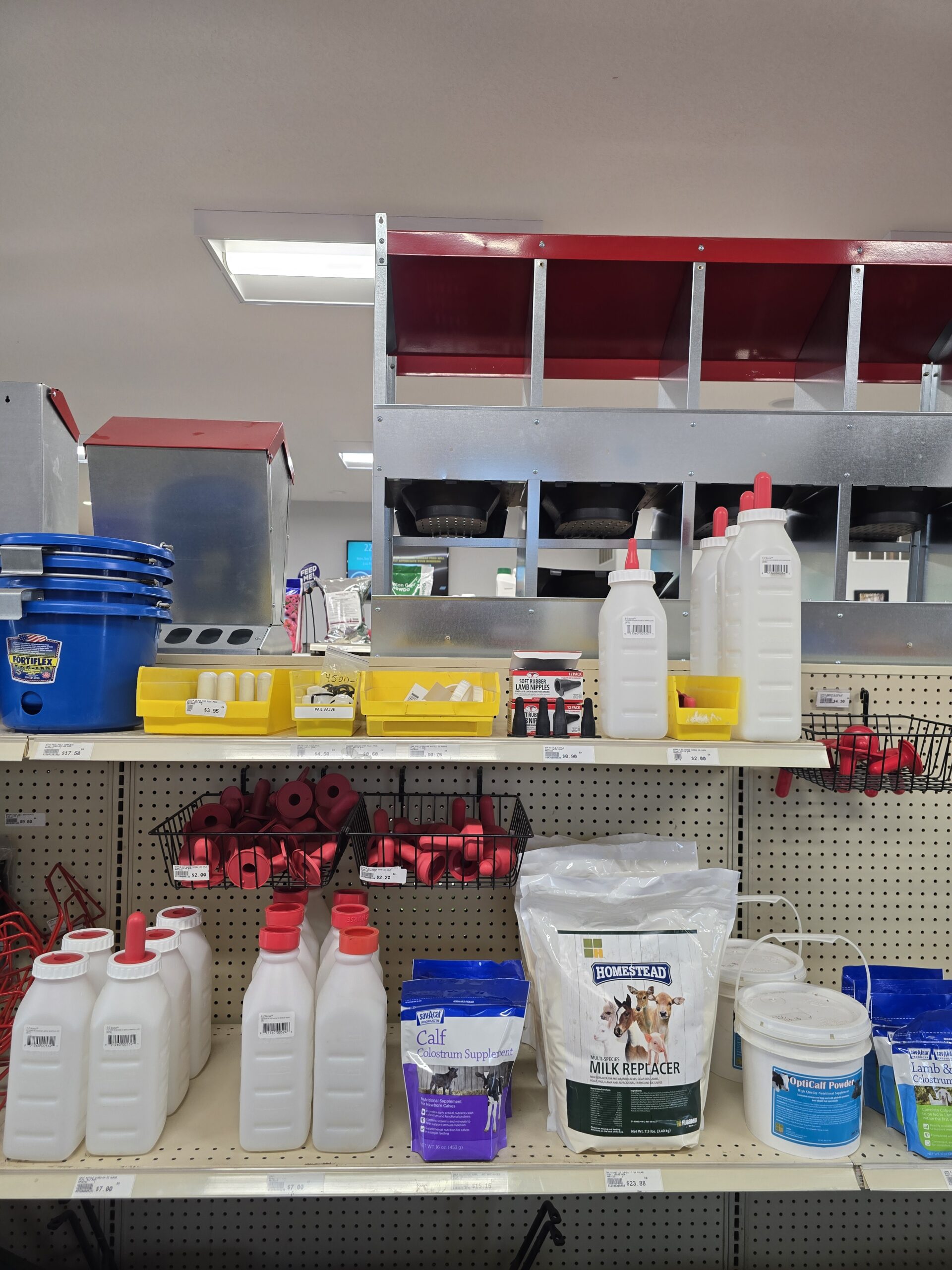 We have calf bottles with screw on nipples or slipover type, as well as replacesment nipples and rings.