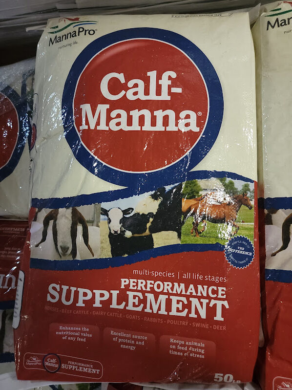 We carry Calf Manna which is a feed that can help put finish and condition on different species of livestock. 50lb bags