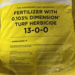 13-0-0 analysis , contains Dimension herbicide to allow you to fertilize and prevent crabgrass in your yard at same time. 50lb/bag, 50lb/10000 sq ft. Recommended March-April application.