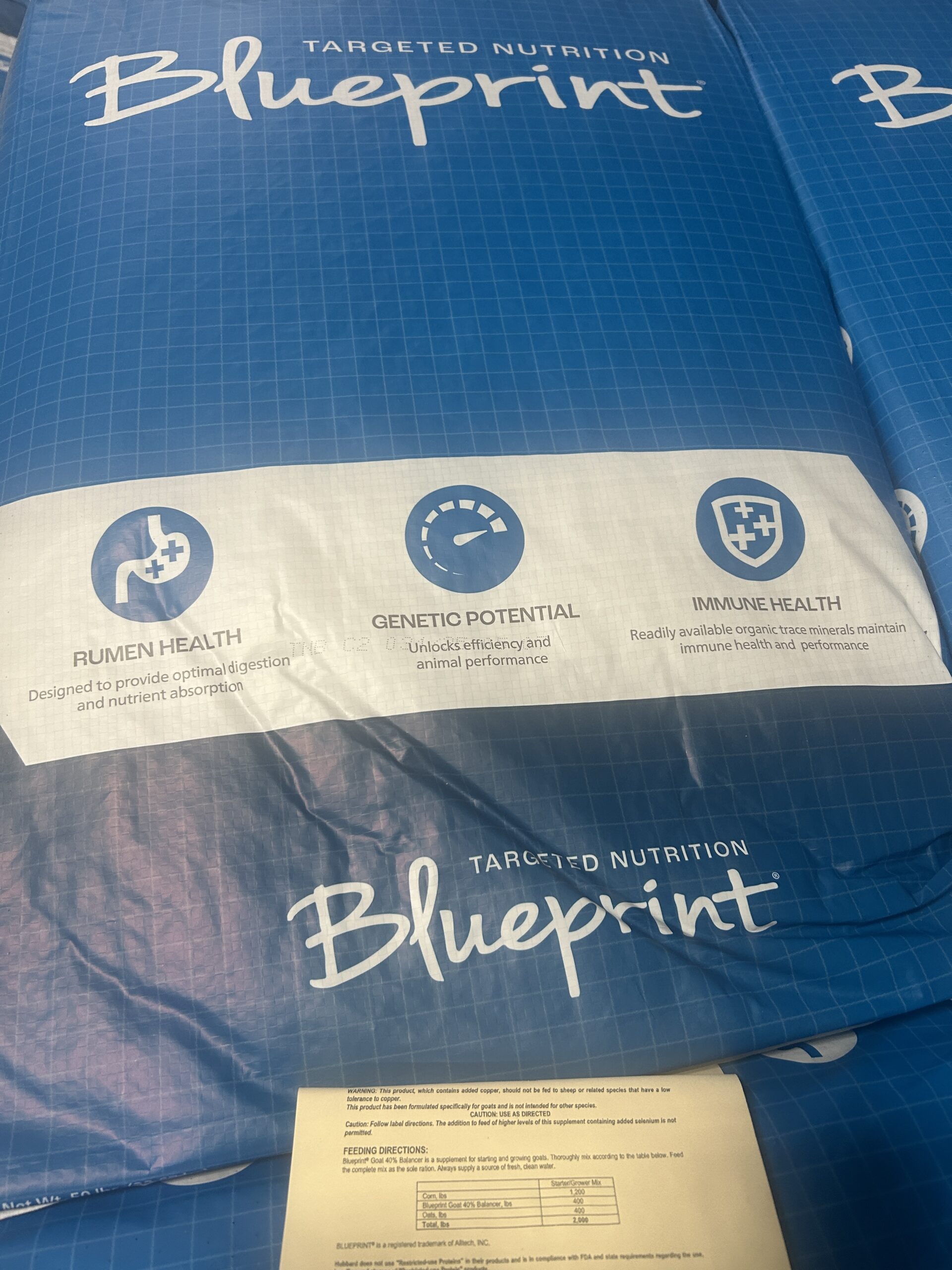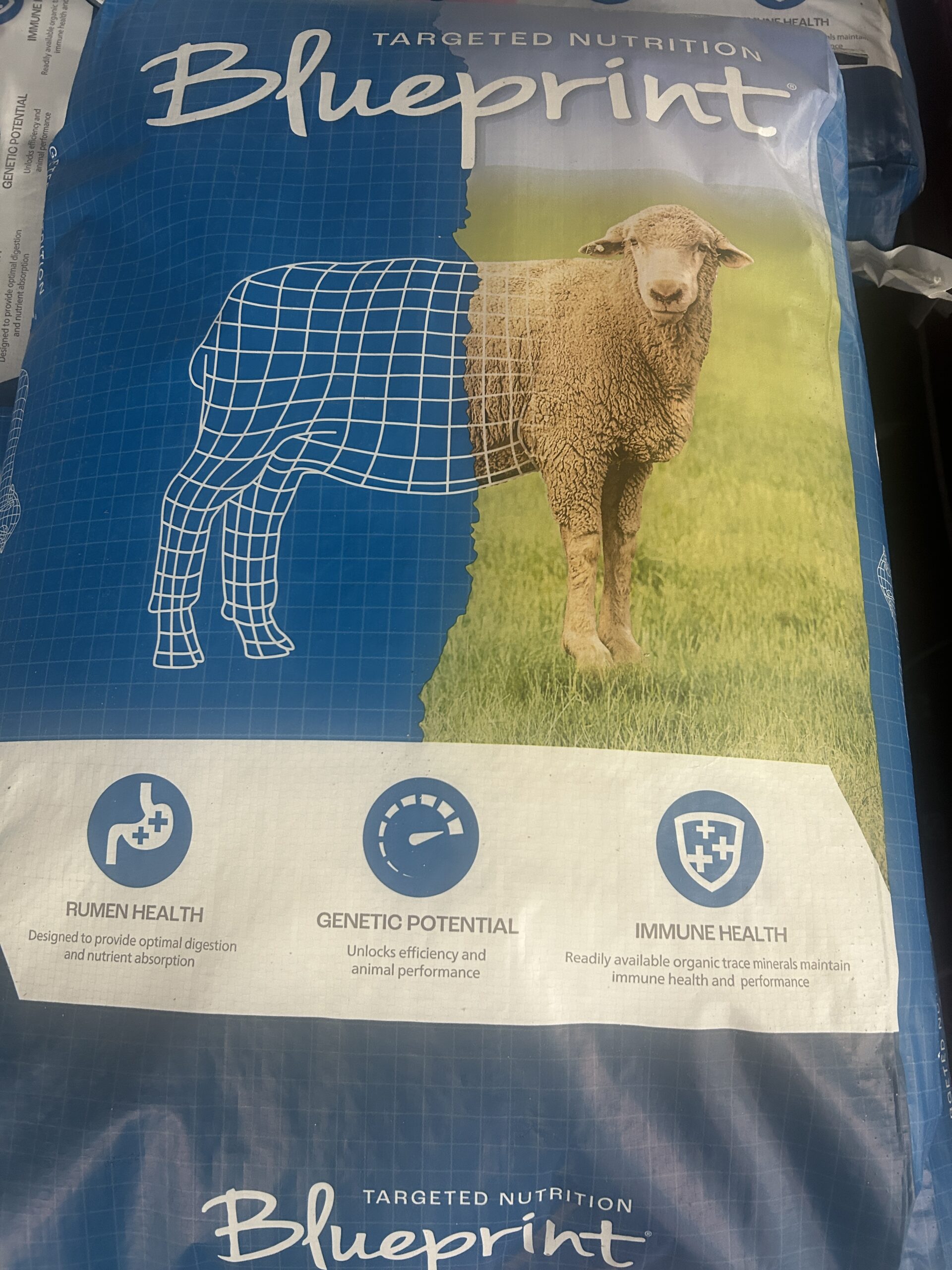 We Have milk replacer, 18% lamb starter for lambs and goats, sheep supplement, and goat supplement.
