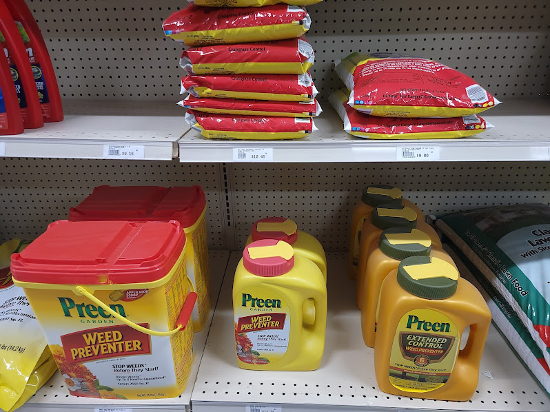 Preen is a weed preventer for your flower beds. Comes in 5, 10 and 31 lb. containers.