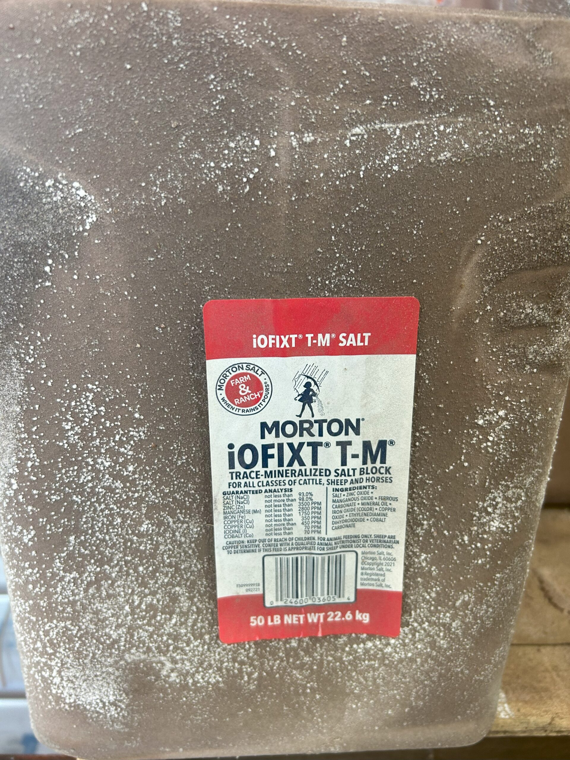 We have both 50lb blocks and 5 lb. bricks of white salt and trace mineral
